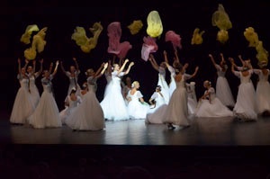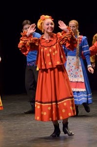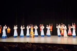 In opening of the Russian Art Festival in Cannes Palais des Festivals Grand Auditorium, a folkloric ballet, the group Berioska from National Ballet of Russia that a public keen of Russian Art came to discover. This group was created in 1948 by dancer and choreographer Nadejdina Nadezhda, People's Artist of the USSR. The Berioska ballet is a true world reference that performed in 65 countries around the world. Combining classic choreographed dances with traditional dances with female rounds, burlesque dances, quadrilles, and the famous sun dance, in which dancers dressed in traditional shimmering robes slide on stage in circumvolutions tuned in millimeters. Each of them boasted such technical mastery, that they seemed to deny the complex choreographic movements they were performing with ease and grace.