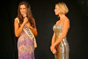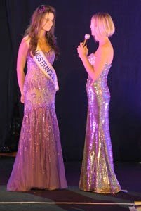 Then candidates performed parades, with a first passage in long evening dress embellished of feathers, rhinestones and sequins, then in resort outfit equipped with their scarves, in mini tight dress or white swimsuit topped with angel wings. And finally in white robes for the finale, each trying to highlight elegance and poise. All were wearing their number as a standard, so that halfway through, the jury and the public had a penchant between a brunette and a blonde competitor: number 9 for Charlotte Mint (Miss Beausoleil) and 11 for Cecilia Sans , whose sister Audrey was Miss Cote d'Azur in 2011.