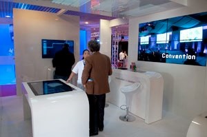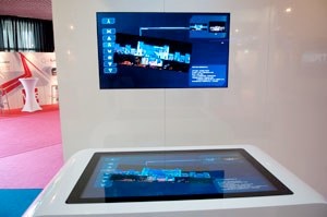 In 2011, Utram celebrated 25 years of services and facilities in the world and in any type of business events or configurations. Partner of ephemeral or permanent communication projects, Utram is a leader in audiovisual equipment rental, event services, sales & integration of fixed and permanent installations in the field of video, audio, computing, light and structure. Utram Cannes celebrated its 10th anniversary in 2011. After more than 10,000 services in the region, the agency pursues its own investment in new technologies and diffusion. The various developments made since its creation enabled it to position itself as leader of the south east service to companies, in the world of exhibition and event. The intervention fields have expanded from the video to sound, light, IT service, as well as the digital video library, where the agency is still the forerunner. At Heavent Meeting Sud, Utram was showcasing exciting large touch screen one can use to display vidéo or images, enlarge, play or or juggle from one to the other with one's fingers.