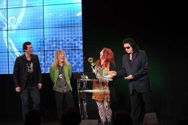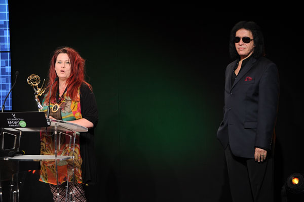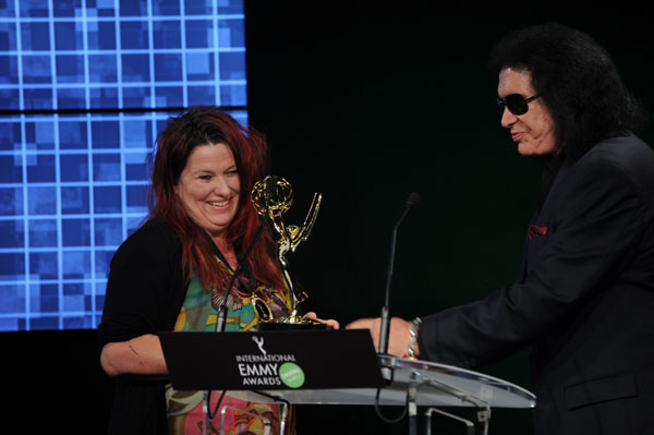 Bassist-singer of rock group Kiss Gene Simmons presented the award to dirtgirlworld… dig it all (mememe productions/dirtgirlworld productions/Screen Australia ) a transmedia project featuring apps that kids can use in nature.