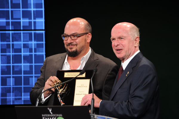 This year’s Pioneer Prize was presented to Anthony E. Zuiker, the visionary CSI-creator, for his innovative contributions to the field of digital entertainment with his online thriller, Cybergeddon. “With cutting-edge concepts and technology that pushes every frontier, these Emmy® winners brilliantly demonstrate the wonderful versatility of multiplatform storytelling.” said Bruce L. Paisner, President & CEO of the International Academy of Television Arts & Sciences, who presented the Pioneer Prize to Zuiker.