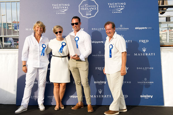 The awards ceremony was held at the Beach Club on the Festival Beach. At the end of this splendid aquatic ballet on the blue waters of the Mediterranean, the jury deliberated to award four prizes, offered to the winning crew members by the Yachting Festival partners: Maserati, Fred, Frédérique Constant, Dalloyau, Louis Roederer, Sisley and Skippers Motor.