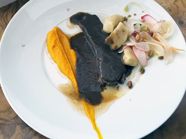 Beef Paleron in Daéube Niçoise, Gnocchi with roasted Pine Nuts, salad of winter vegetables with olive oil.
