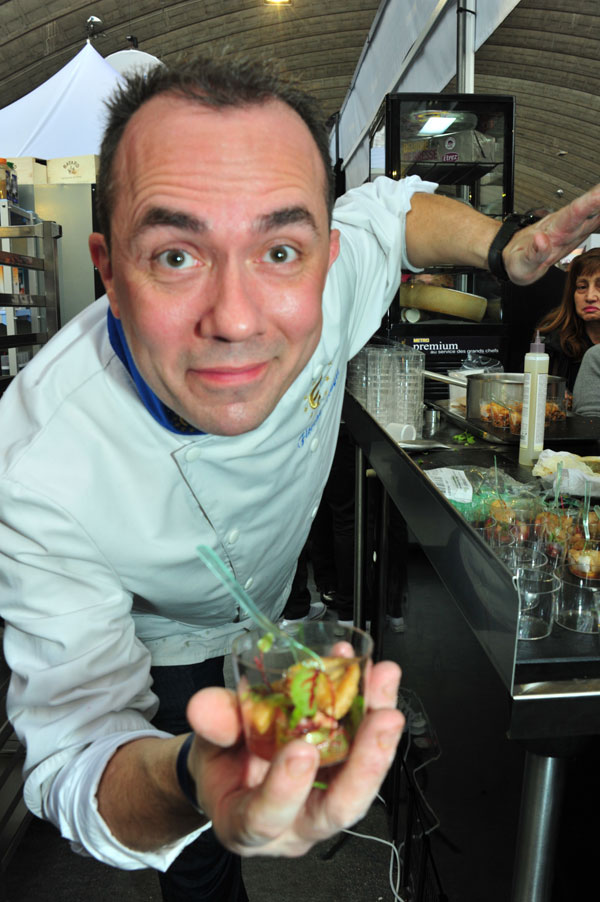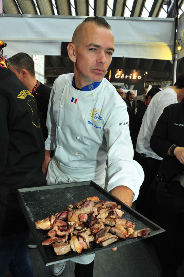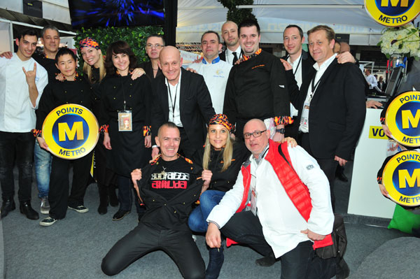 Toques Brulées made the show at the salon Agecotel, the trade show for catering and hotel industry with some members of Euro-Toques. On the Metro booth, the chefs of both associations made on February 1st a very brilliant show by achieving a myriad of recipes in an atmosphere of sheer folly and sharing. A truculent spectacle led by David Faure, the mischievous, deliciously rebellious chef from Nice.