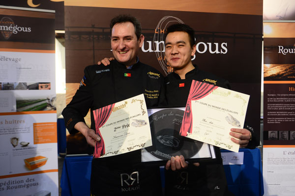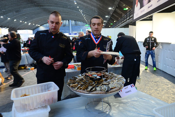 It was moderated by Carinne Teyssandier, star of Télématin on France 2, who proposes on the show her “Gourmet Recipes” and “Duplex”, live from Rungis (international wholesale market for fresh produce) The international competition was featuring 12 professionals oyster-sellers engaged in activities related to the seafood, in an establshment such fishmonger or restaurant.