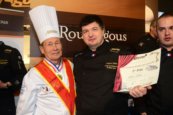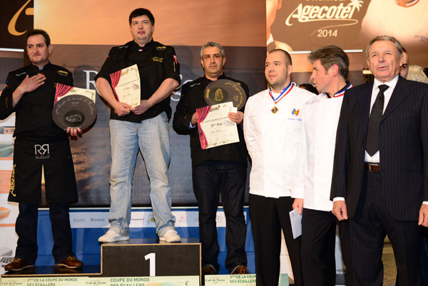 First prize: Fabrice Sibilia, representing France, Crustacean Restaurant Ecailler Cellerier in Lyon. As the winner of the 2014 edition, he was appointed Chairman of the jury for the next edition of Agecotel in 2016, and will be part of the members of the Organizing Committee.