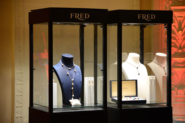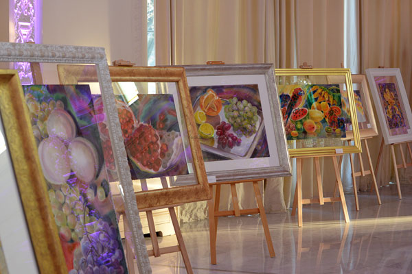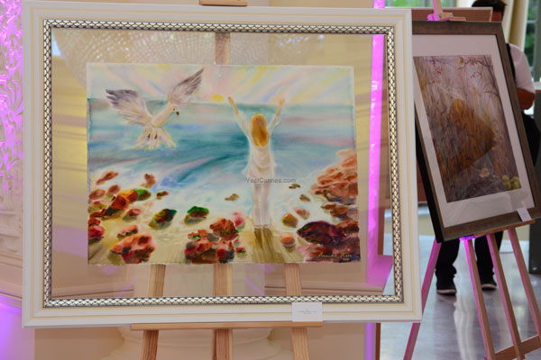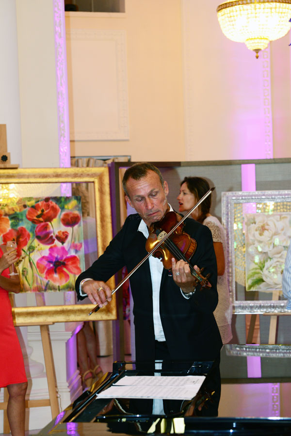 The opening on the evening of August 2 was placed under the sign of art and luxury. Elegant windows exposed jewelry collections of the prestigious jeweler Fred in Cannes. A musical duo, consisting of a pianist and a violinist, charmed guests strolling among the works of the artist, a glass of Champagne from the famous house Collet in hand, while feasting on culinary delights, biscuits and sweets concocted by Lenotre chefs.