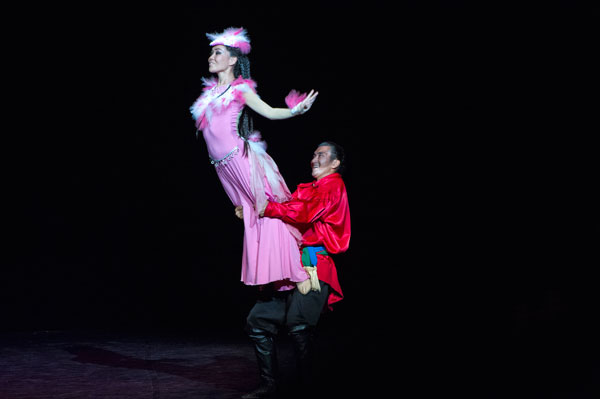 With the show Altin Kook ballet, the Debussy theater audience was carried away in a captivating and mysterious dive in the heart of the huge ice Siberian expanses. In the first part, on a contemporary choreography, a story based on an ancient legend inspired a kind of Swan Lake ballet in which wonderful flamingo metamorphose into beautiful girls, on a background of spells, cuckoos, knights, hunters and fighting. Throughout the show, the dancers, wearing their fox fur hats, wearing gleaming dresses and shod in black leather or animal skins boots, offered the spectators a fantastic staging composed of breathtaking acrobatics, impressive improvisations and dance of great artistic technicality.
