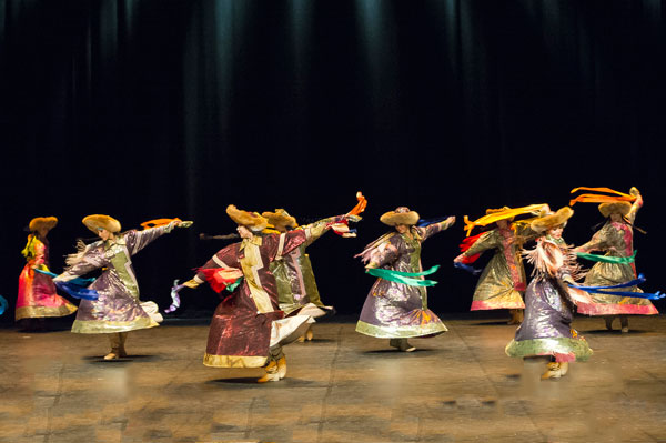 In the second part, came the artists of the ballet Altin Kook and the ensembles Koun Souzy and Ulguer from the Philharmonic of Khakassia. Musicians and singers accompanied by their six-string chatkhane and singing with throaty voice coming from the depths of time, seeming issuing a sound lava from their bowels, astonished and delighted the audience of the Debussy Theatre. Dancers clad in traditional dresses with bright colors and surrounded by multi-colored ribbons fluttering in the wind, slipped on stage in convolutions adjusted to the millimeter. Each performed the choreographics without effort: a feast of ease and grace.
