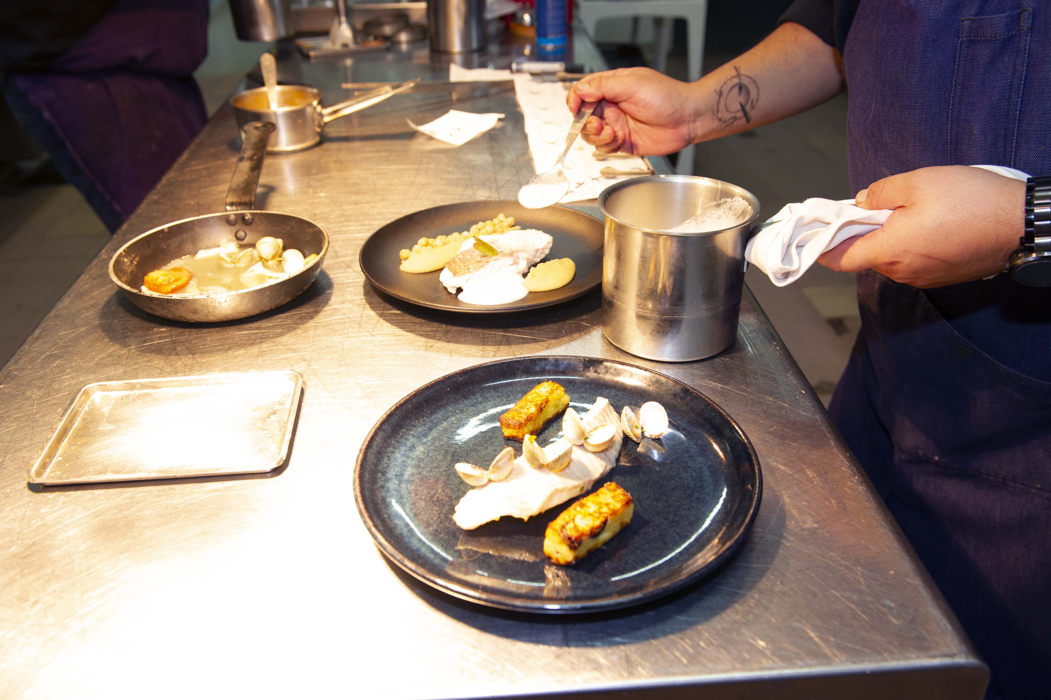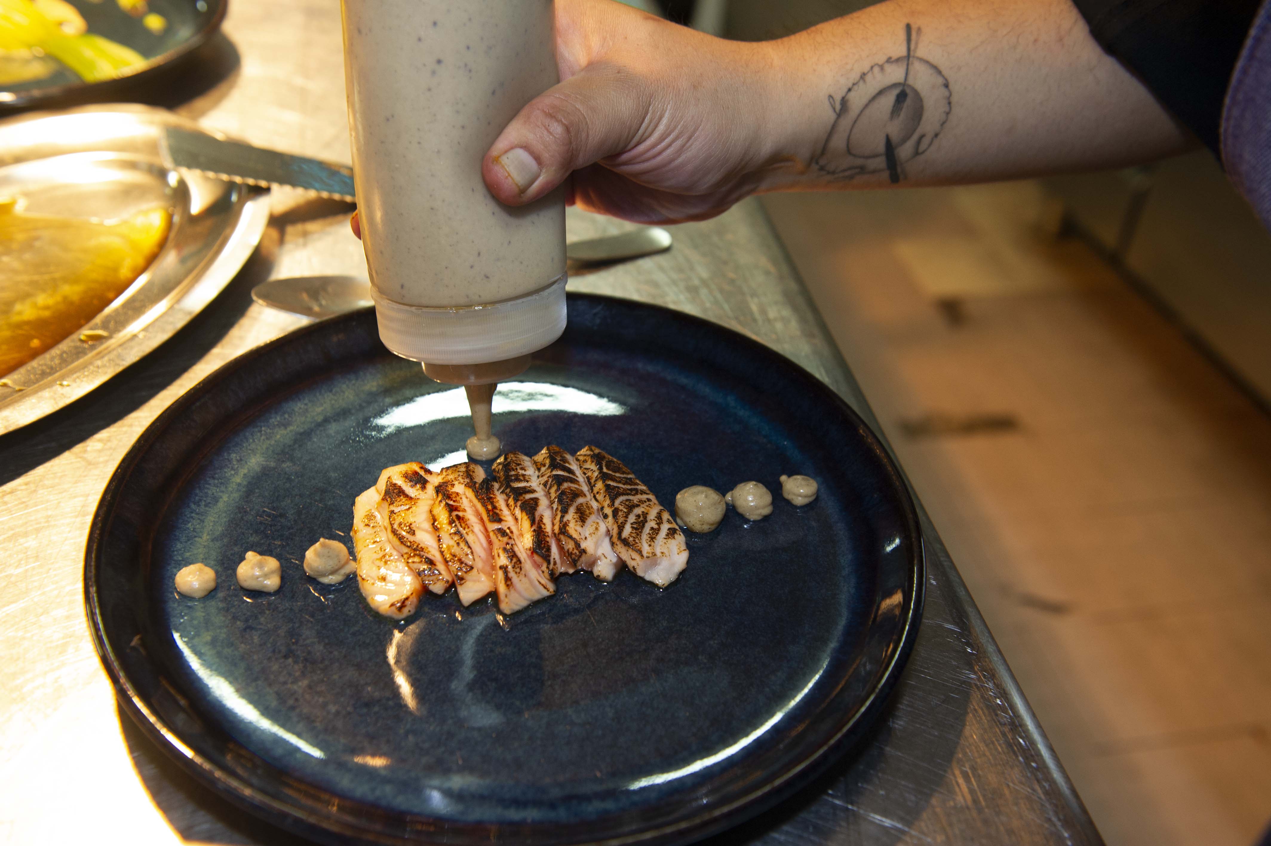 Jong Dary fish Meuniere, Provençal Artichoke barigoule flavoured with Orange and Saffron, Gravy Sauce Foam