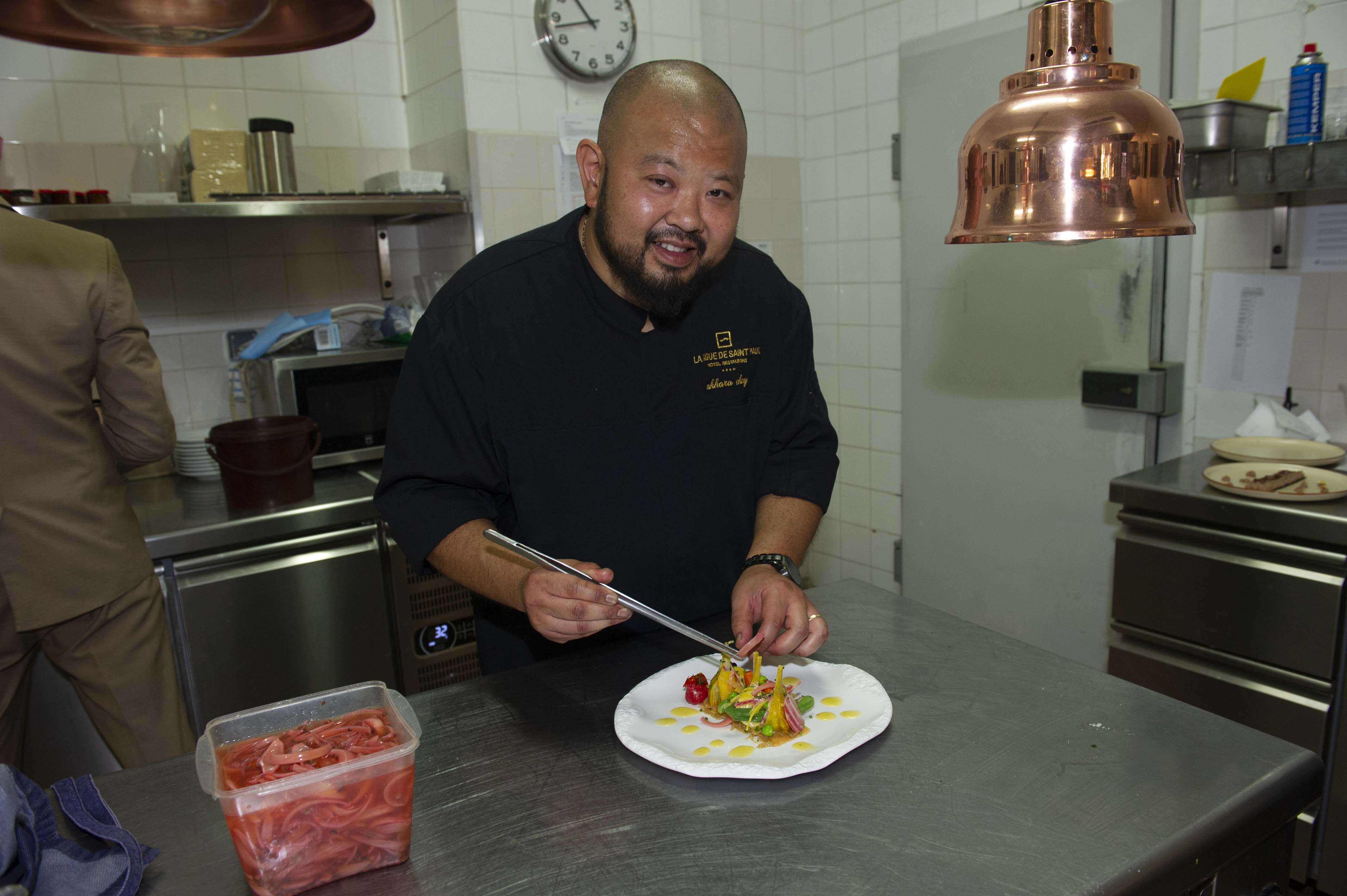 Of Cambodian and Thai origin, the young Akhara Chay finds very early his vocation in the French gastronomy. After studying with Ghislaine Arabian, Ledoyen and Alain Ducasse at Le Park and at Le Saint James in Paris, he joined his mentor, the Chef Eric Provost at the Royal Barrière in Deauville. There, he will remain for six years as a sous-chef and will participate in obtaining a star in the famous little “red guide”. In parallel, he obtained a degree from the Paul Bocuse Institute. In 2005, Akhara joined Serge Gouloumès at Le Mas Candille in Mougins, where he also helped to win a Michelin star as chef of La Pergola. The chef then dumps his suitcases in prestigious maisons such as Le Mas des Herbes Blanches, Relais and Chateaux in Joucas, which welcomes him in March 2009 for his first place as executive chef and La Palmeraie of the Château Valmer in La Croix Valmer near Saint Tropez.