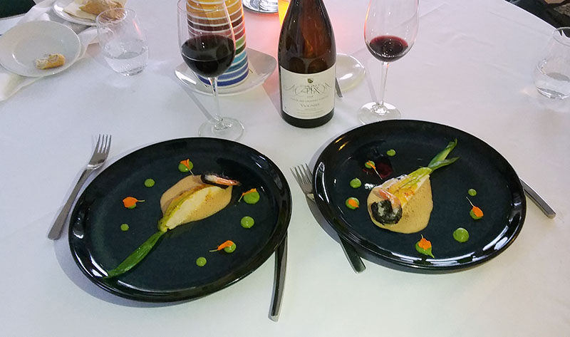 In addition to the menu, La Vague de Saint Paul offers for lunch, from Monday to Saturday, a two-course business lunch menu, water and coffee included at 25 € or a starter or three-course lunch menu, water and coffee included at 29 €. In the evening a four-course dinner menu, excluding drinks at 49 € and a menu Carte Blanche du Chef, excluding drinks at 69 €. La Vague de Saint Paul also has a fine wine list developed by Chef Sommelier Jérémy Allégretti. The superb vinotheque installed in the restaurant room gives guests a taste of the wines they can enjoy during their meal. Some wine&food pairings are offered as an inspiration in the photo gallery at the end of the article.