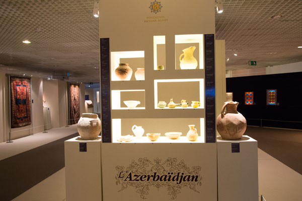 On July 5, the public could discover at the Palais des Festivals, Espace Riviera, the exhibition Cultural Values of the Pearl of Caucasus: Azerbaijan and Emotions, a mix of traditional and modern art exhibition, composed of symbols of Azerbaijani culture, found during archaeological excavations, copper objects, old musical instruments, carpets with mysterious patterns inherited from ancestors, national costumes and so on. The exhibition was inaugurated in the presence of Mehriban Aliyeva, First Lady of Azerbaijan, Leyla Aliyeva, Vice-President of the Heydar Aliyev Foundation and Bernard Brochand, Deputy Mayor of Cannes.
