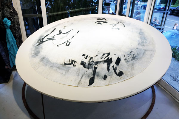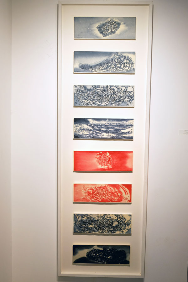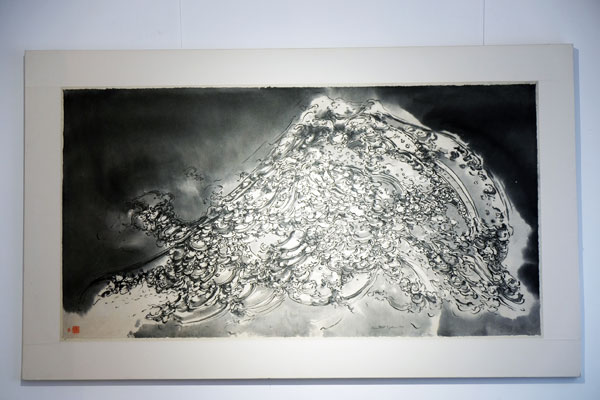 Francis Herth’s brush sculpts the Japanese paper he is using, creating waves and movements, declined in a sensitive variation in black or blue ink.