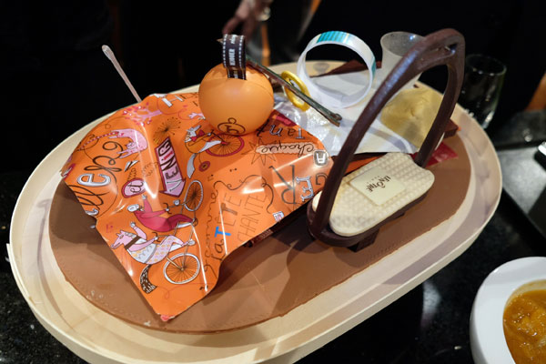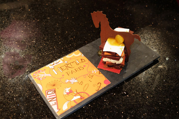 By partnering with Hermes research laboratory, the famous Maison Lenôtre gave carte blanche to Pascale Mussard, Artistic Director of small h, Hermes creative workshop and research laboratory. The superb design work has been translated into gourmandise by Guy Krenzer, Lenôtre’s Director of Creation and his experts pastry chefs.