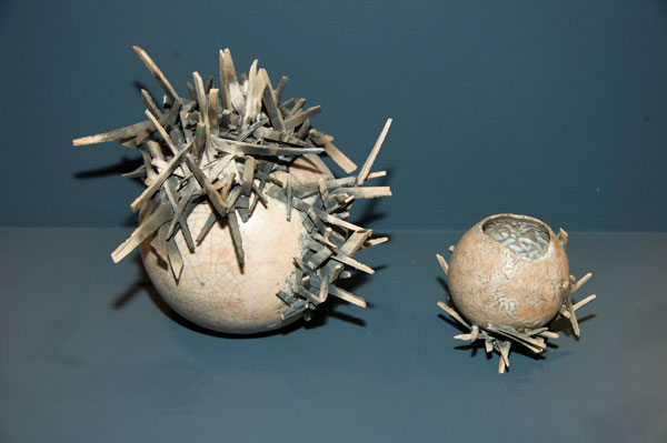 The Raku is a quick cooking process and enameling technique developed in Japan in the 16th century. As the pieces must withstand drastic temperature changes, the artists are using a sandstone grog. The contemporary Raku is an adaptation of these traditional methods.