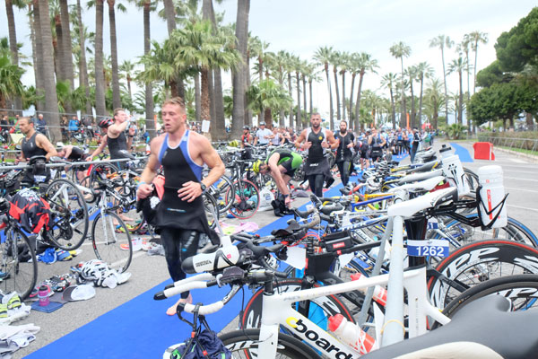 The running test was held on the Croisette: the L Triathlon included 4 return races on La Croisette (16km) and 2 for M Triathlon. For swimming, the participants traveled from the west cove of Bijou Plage in front of the Palm Beach, and carried out a 1,000 m loop. They then went out by the east cove and jumped onto their bike on the Palm Beach bike park.