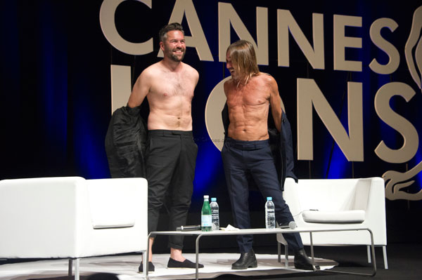 On the stage of Cannes Lions, at Grey Musical Seminar, the great Iggy was amazing, very funny, insightful and witty, proving he is still jumping off and his rebellious spirit still alive despite of age. At the end of the discussion, he told Nils: “We’d better tear our jacket off, or people will be pissed!” And both ended up naked to their waist.