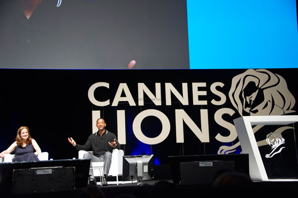 The session began with a short film showing extracts of Will Smith’s many-facet talent before the artists hit the stage, shouting his joy of meeting Cannes Lions delegates. The actor then talked about the beginning of his career and his true inspiration: his grandma! He recounted how the lady returned his book of raps he wrote at the age of 12 with a note telling: “Dear Will, intelligent people don’t use these words. Show you’re a smart guy”! That made him realize that “the thing you create have an effect on the people who interact with your art…” At every creation, he then thought: “How would grandma feel about this?”
