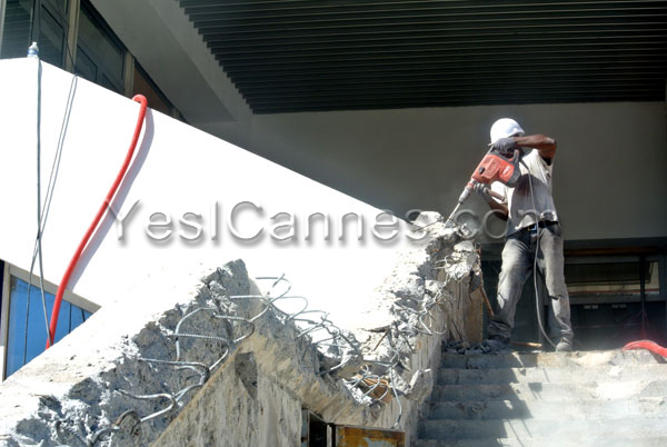 Since July 1st up to September, the facades of the large auditoriums and the world-famous 24 “Red Carpet” steps are in the works, but the mandated group Eiffage Construction Alpes-Maritimes and various construction trades are also busy within the 30,000 m2 of the exhibition center – out of a total of 80,000 m2 of the building.