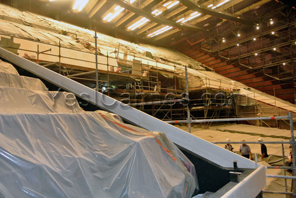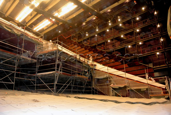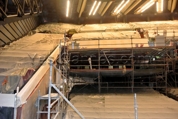 Moreover, the long-awaited renovation of the interior of the Grand Auditorium Louis Lumiere is underway: modernization of access halls (orchestra and balcony foyers) to provide more noble and spacious volumes. In the theater, the replacement of certain facilities (scenography and lighting) will provide a more modern look to the Grand Auditorium Louis Lumière at the end of the summer. The 2014 summer will be dedicated to the grounds and the replacement of the 2,309 seats.