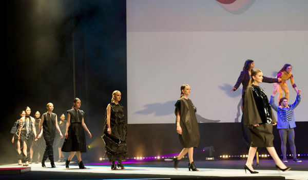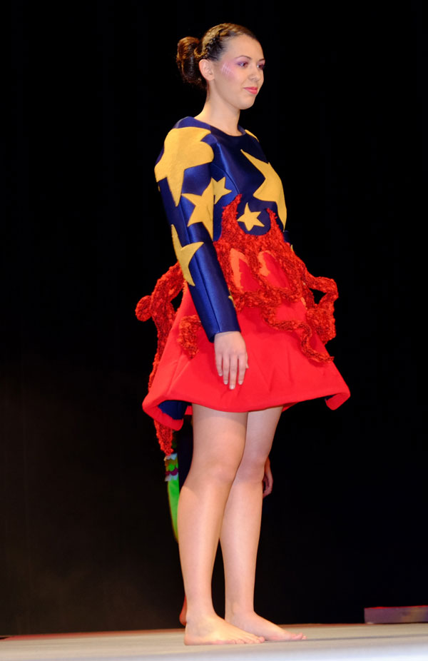To close the Cannes Shopping Festival, the creations of students stylists Cannes Coteaux, Milan and Prague who put their talent in front, presenting their creations on the huge stage of the Grand Auditorium of the Palais des Festivals in Cannes at the same location or is given each year the Palme d’or at Cannes.