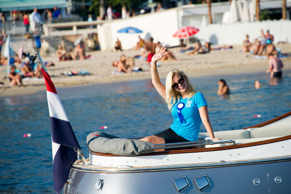 The boats participating in the Concours d’Elegance are divided into three categories. The units built before 1980, those built between 1980 and 2000, and finally the new models designed after 2000. These seas beauties are judged by a jury of six people installed on a ship anchored off the festival beach. It has to appreciate the scarcity the model, its history, the quality of its renovation, design and state of preservation. When passing the jury boat, each crew, a glass of champagne in hand, must greet the public as a sign of good manners and friendliness.