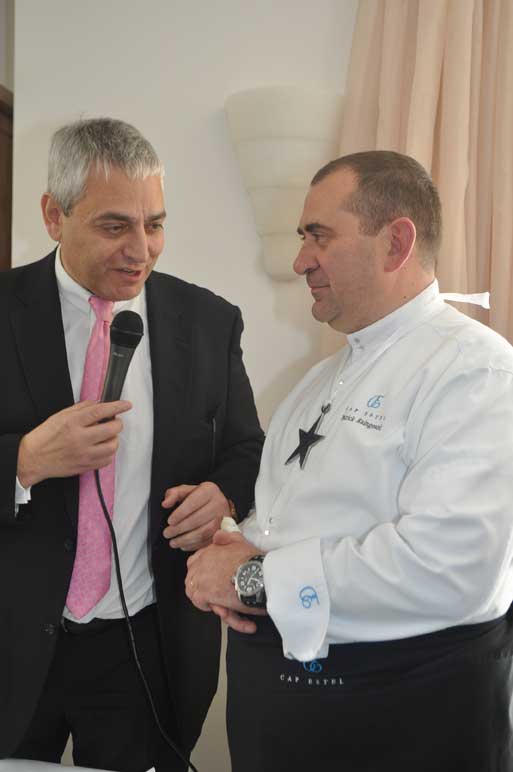 This happiness and this star, he has wanted to share over a cocktail and lunch especially prepared for his friends and customers during a beautiful reception in the tropical paradise of Hotel Cap Estel in the presence of Mayor of Eze Stéphane Cherki, CEO Eric Paulus and Service Director General Elisabeth Moraglio, his family and many colleagues chefs and pastry chefs. Indeed, for this great event, prestigious chefs were present to taste champagne such as Denis Fétisson, Sébastien Broda, Stéphane Raimbault, Michel Devillers, Joêl Garault, Jean Claude Brugel, Charles Séméria, Luc Debove, Jean Marc Delacourt, Christian Garcia, Lyès Abidi, Jean-Claude Guillon, Richard Vacher… Patrick Raingeard has been congratulated by Mayor of Eze Stéphane Cherki who remembered that Eze was the most starred city in France.