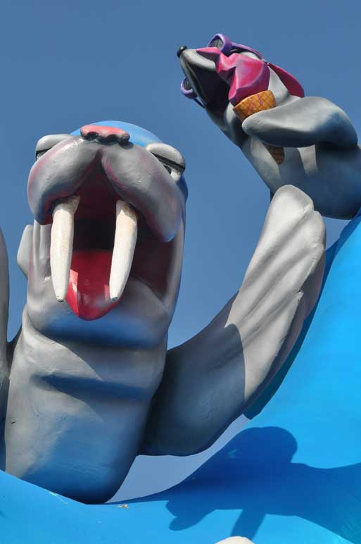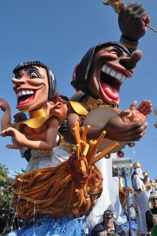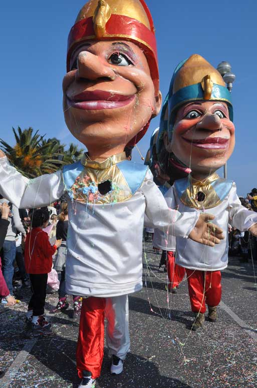 The carnival processions, comprising 18 floats, work their way up to a crescendo of gigantic decorations on the Place Masséna. These giant, colourful parades take place day and night, with entertainment provided by over 1,000 musicians and dancers from across the world. For over 15 days, the city hums to the rhythm of this genuine, fairy-tale event for people enjoy the freedom of disguises, dances and songs, to forget the dullness of winter and take in the sun on the French Riviera. The Carnival Parade is made up of eighteen floats designed on the year’s theme and other figurines, including 30 in traditional papier maché in a colourful parade with dazzling colours, with the participation of street theatre and music groups from all over the world. Each Carnival represents an original shortlived production. Being a Carnavalier is not a profession, but a passion or a vocation. The large workshop where these craftsmen work, called the “Maison du Carnaval” is transformed into a magical setting for several months. Even if new procedures, techniques and materials have paved the way for the mechanisation, articulation and modernisation of elements, the basis for float and big head construction has remained identical to its origins.