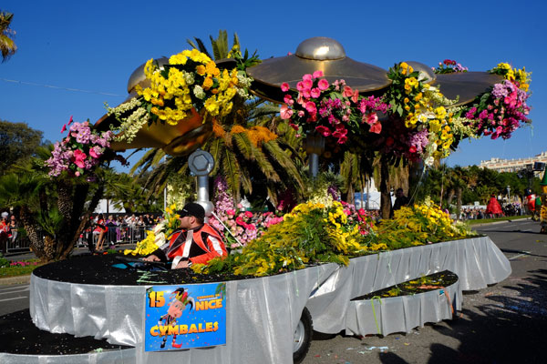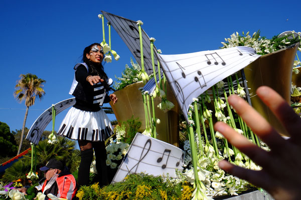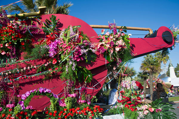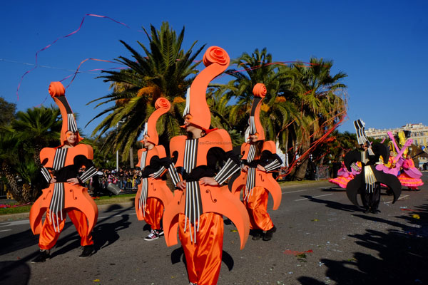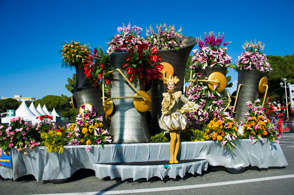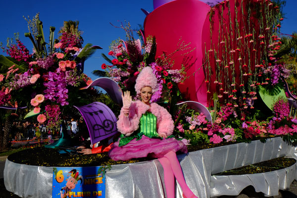 In unison with the floats of the Carnaval de Nice 2015, the procession of the Flower Parade is a flamboyant floral staging illustrating the theme of Music.