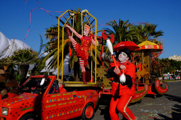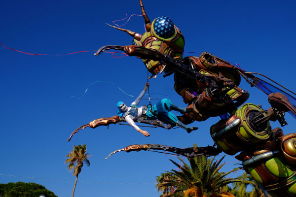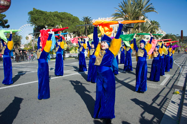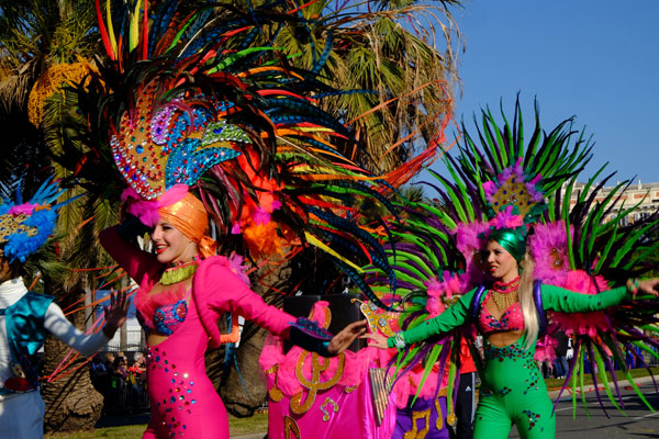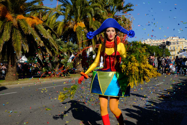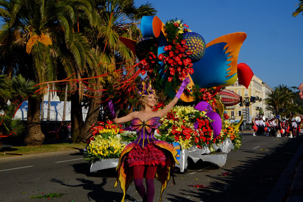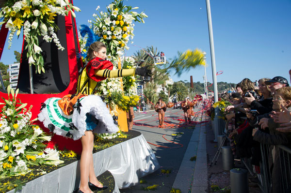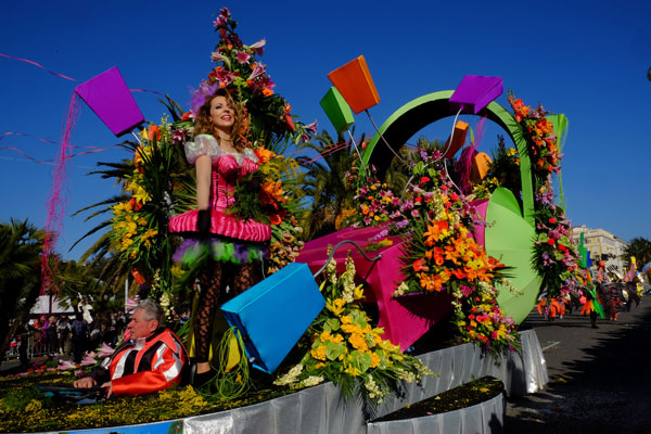 The Bataille de Fleurs (Flower Parade) is a unique show in the world, combining elegance, beauty and charm. The 16 floats, completely covered in flowers, parade on the Quai des USA and the Promenade des Anglais. Beautiful models, sumptuously dressed in a madly original costume, giving them a unique aesthetic and festive look, are throwing to the public bouquets of flowers: mimosa, carnations, roses, gladiolus, tokios, gerberas, dahlias, lilium… that greedy hands snatch with shouts of joy.