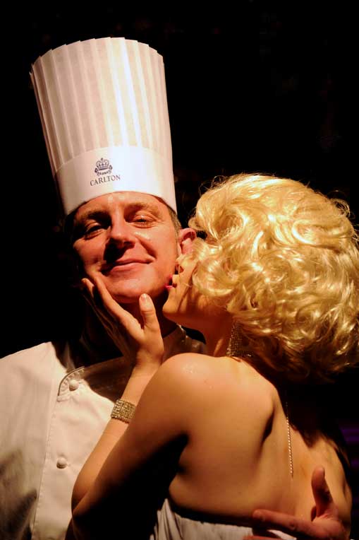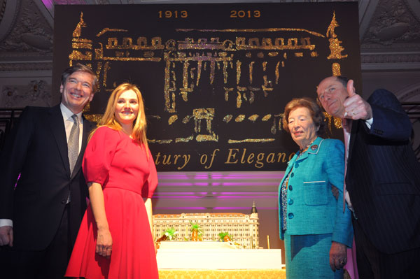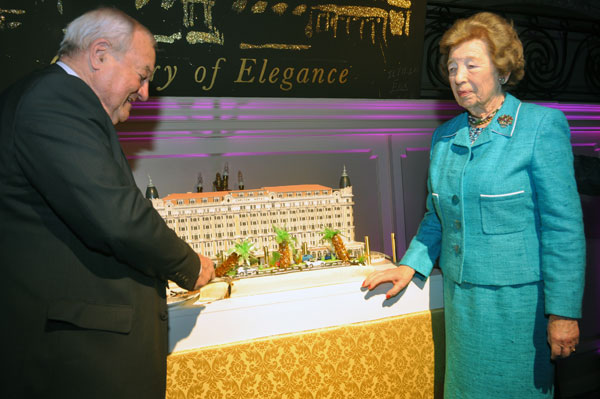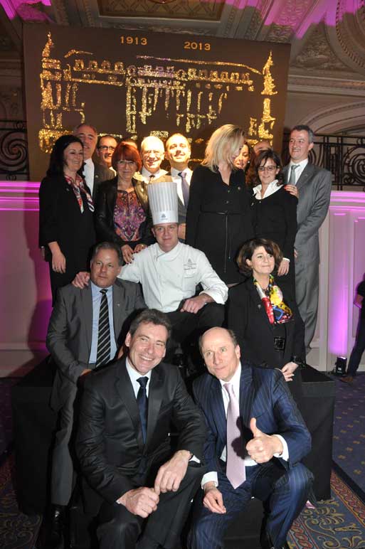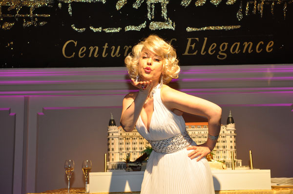 At the table of honor, General Manager François Chopinet welcomed Lady Butter and her children, the Mayor of Cannes Bernard Brochand, Gilles Jacob, president of the Cannes Film Festival, David Lisnard, President of the Palais des Festivals and Congresses, all present to celebrate the Centenary of the most legendary monument de la Croisette. The Lunch was punctuated by toasts in the Russian way, each raising his glass in honor of a person. But the Intercontinental Carlton still was reserving a surprise to the guests: the appearance at the end of the meal of a huge star, dear to all our hearts: Marilyn. The star was kind enough to grant photographers the pose that has made the American actress legendary. When it came to dessert, François Chopinet invited Lady Butter and Bernard Brochand to cutting the hundred years birthday cake. When Champagne was served, kitchen teams that had achieved this feat centenary lunch came then to reap well-deserved congratulations, fixed for posterity in photos.