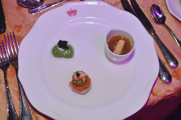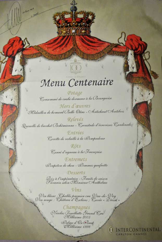 The launch day of the Intercontinental Carlton Centenary celebration reached its peak with the centennial gala lunch. For the occasion, the Chef des Cuisines Laurent Bunel began to honor the cuisine of yesteryear, such as savored at the opening of the hotel, offering a “Centenary” menu of twelve dishes with a nod at the three services (French-style, English-style and Russian-style).