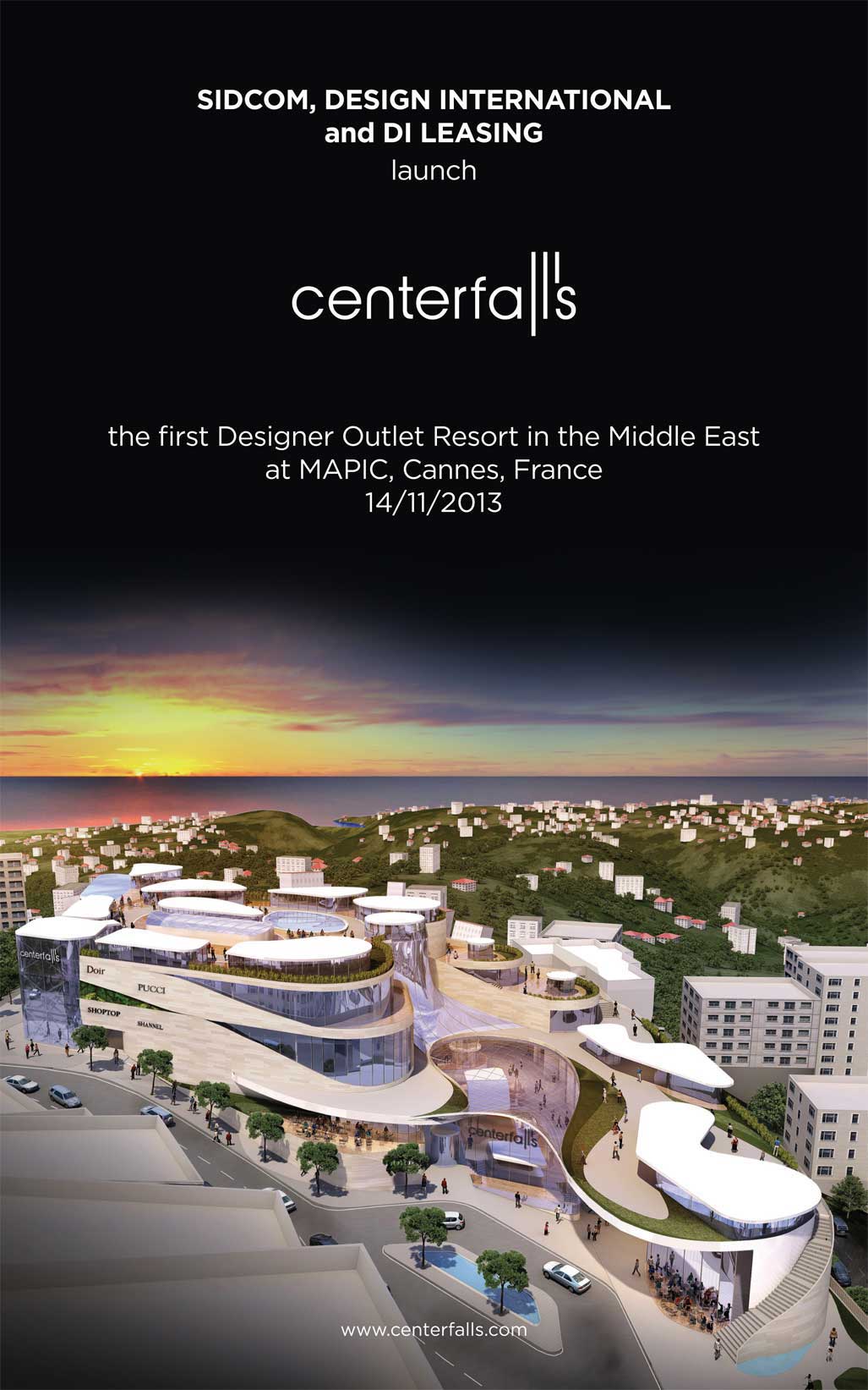 At Mapic 2013, Lebanese Developer Sidcom, architect Design International and leasing agent DI Leasing were introducing Centerfalls, the first Designer Outlet Resort in the Middle East, in Beirut.