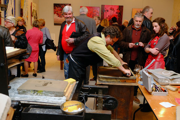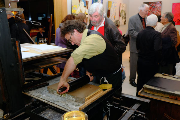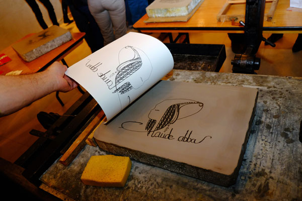 Mario Ferreri, who was demonstrating the printing of lithographs with a traditional hand press at the event, is one of two remaining master lithographers in France.
