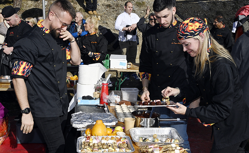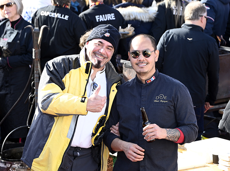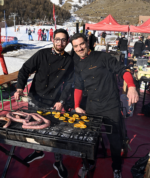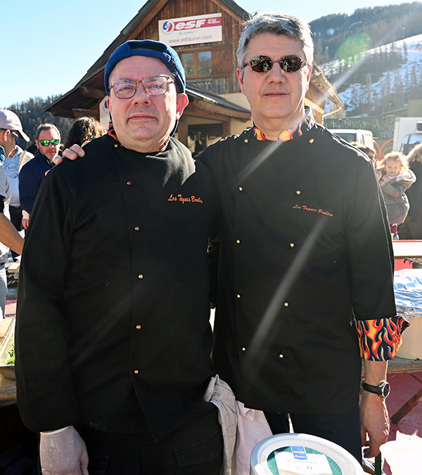 Under the flamboyant Toques Brûlées outfit, in the presence of 2024 sponsors duo Victor Delpierre and Stéphane Mangin, around twenty chefs, led by chef David Faure from SensÔriel in Nice and Noëlle, her partner in the kitchen and in the city, treated skiers and skaters, Auron residents and tourists alike to over three hours of gourmet delights, with their giant barbecue and a Culinary Art show of rare intensity.