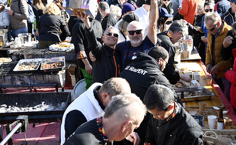 From seven o’clock onwards, the Toques Brûlées and their guests were on hand to heat up the barbecues and being able to treat a crowd of delighted skiers from midday to 3pm! On the menu were a host of grilled specialities: game, lamb on the spit, ribs, fish, country soup…