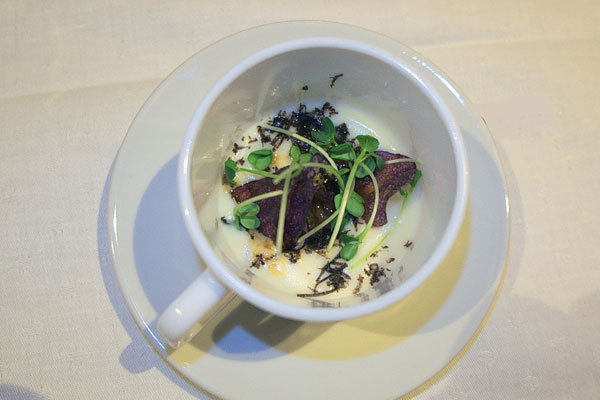 Jerusalem artichoke velouté, Mountain Ham and Foie Gras