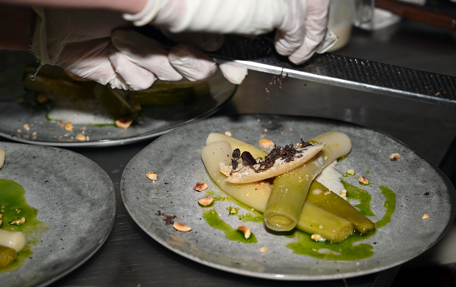 Leeks with organic vinaigrette of vegetables from St Paul de Vence, grated truffle