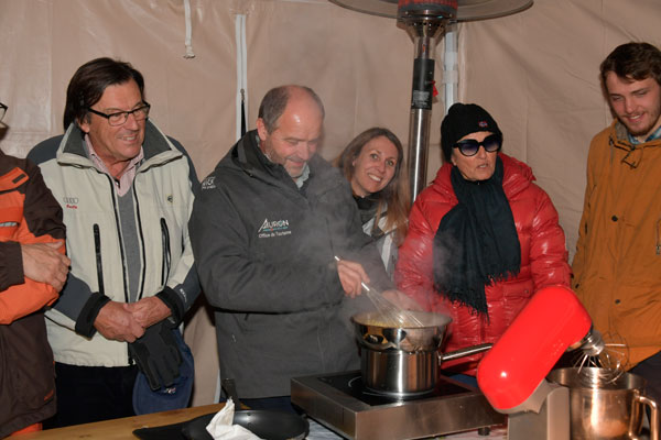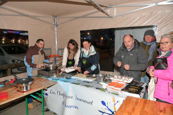 On Sunday, at the foot of the slopes, skiers and gourmets savored a salty and sweet show cooking during a giant barbecue hosted by the Toques Brûlées led by the dazzling David Faure. Each year, the supercharged chefs were still going strong to ignite the Auron tracks by grilling and having gourmet specialties tasted such as the Organic Mountain Soup, fine grilled fish, roast lamb on a stake, spicy squid skewers, grilled game… all that followed by a chocolate fountain.