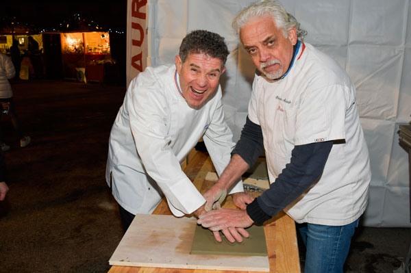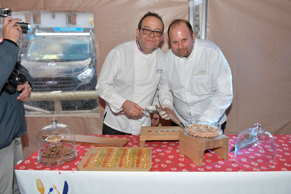 The chefs’ week of generosity and sharing of began with a tasting of refined dishes concocted by the MOFs. Jean-Marc Delacourt, JMD Conseils, surprised and delighted the gourmets with a Natural of Saint Jacques and Green Apples, Carpaccio de Bœuf. Eric Finon, from Maison Lenôtre, has delighted gourmet papillae with Lemon Sablé and Diamond Chocolate, Crémeux Praline and candied Lemons and Oranges. Denis Ferault, from the Regional College Hotelier and Tourism Paul Ogier in Nice, cooked flambe Crepes Suzette in front of a crowd of skiers hungry for scented sweetness. Stéphane Monalto, Meilleur Ouvrier de France Ceramist Potter, proposed to the public to immortalize their passage at Chefs au Sommet d’Auron by taking the imprint of their hand on a plate of clay. Art lovers were also able to discover the tantalizing photos of culinary photographer Aline Gérard.