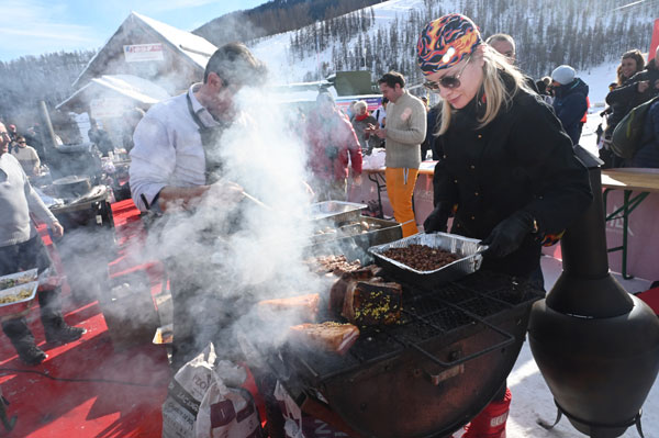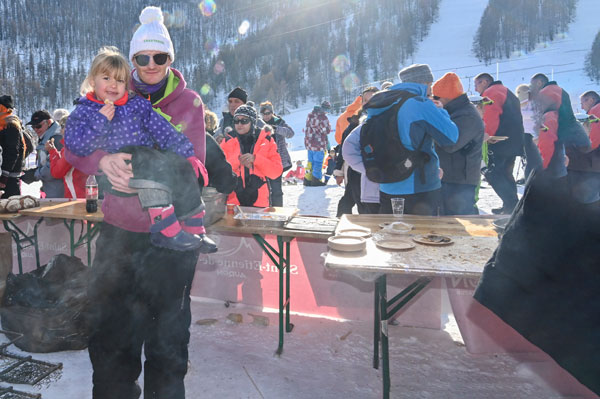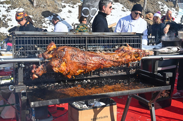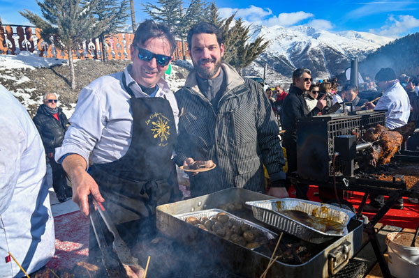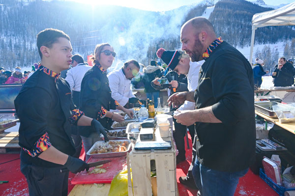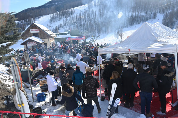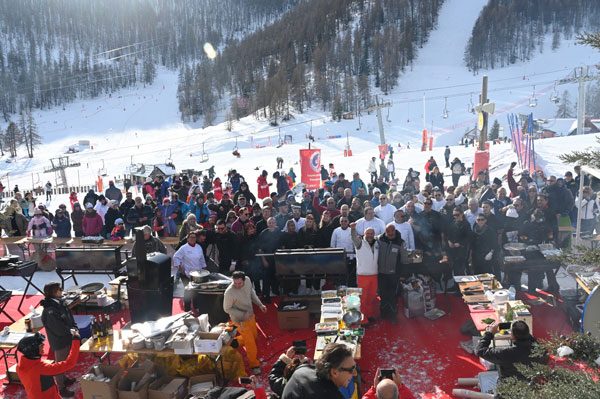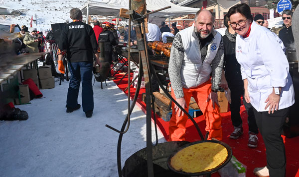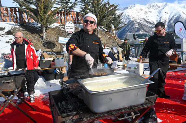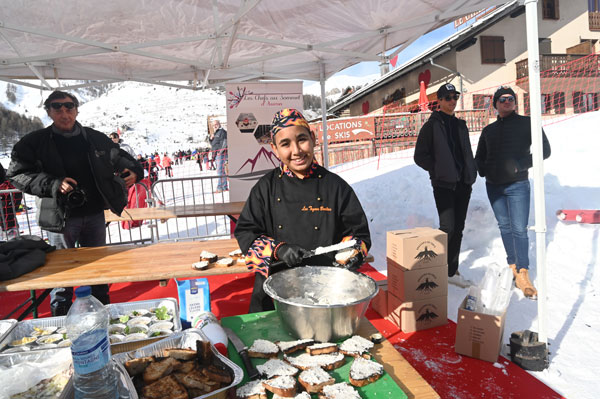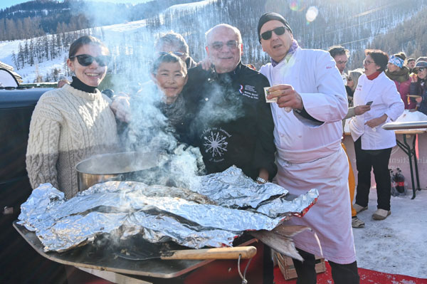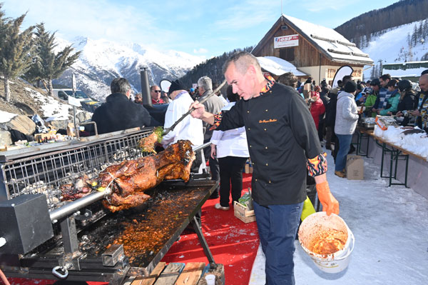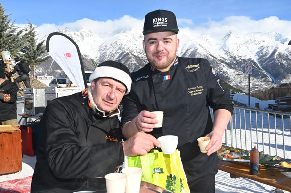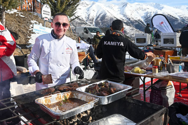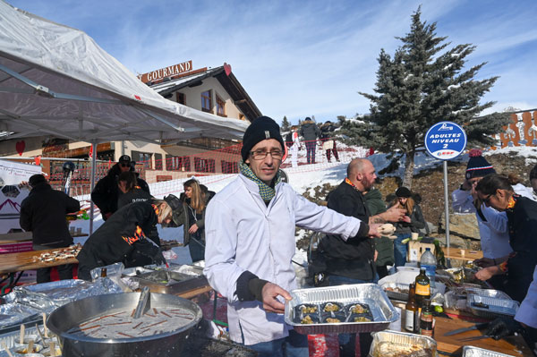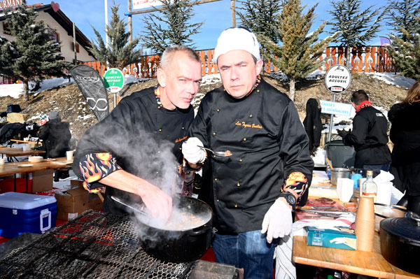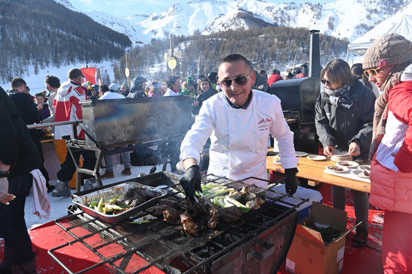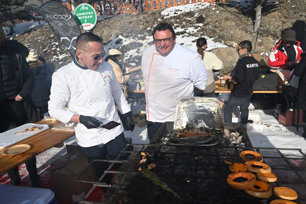 At Les Chefs au Sommet d’Auron, on Sunday 19th January 2020, skiers and gourmets were spoiled: a breakfast was offered at the foot of the ski trails followed by the now traditional giant barbecue with tasting of grilled meat and fish by the Toques Brûlées led by the lively David Faure. About twenty chefs set the snow front ablaze with their gastronomic delights to leaving the skiers of the domain enchanted.