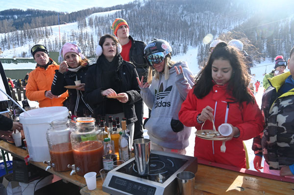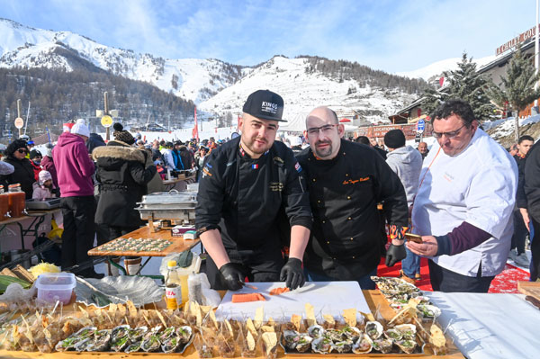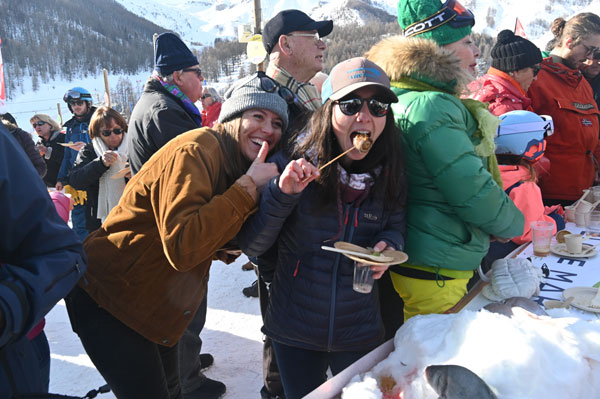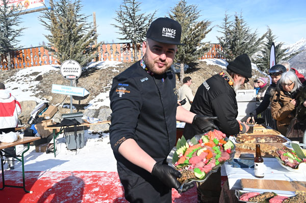 The Toques Brûlées delicacies were accompanied by country breads from artisan bakers such as the Boulangerie Centrale in Saint Étienne de Tinée, the Maison Yalex in Isola Village, Les Pains de Flo in Auron and Rolfo Créations in Saint Laurent du Var. Sweet delicacies delighted the taste buds of an audience put in appetite by the fragrant fumes that floated around, impatient to taste these marvels offered by Les Chefs au Sommet d’Auron. To help you to stay in front of the buffets rather than hurtling down the slopes! On the drinks side, Victor Delpierre, Barista/Cocktail World Champion, had prepared delicious fruit cocktails. The Bières du Comté, brewed and bottled in Saint Martin Vésubie, gave a boost to this event, which was a celebration of sharing and gastronomy.