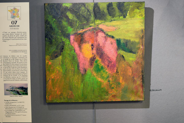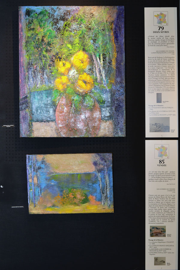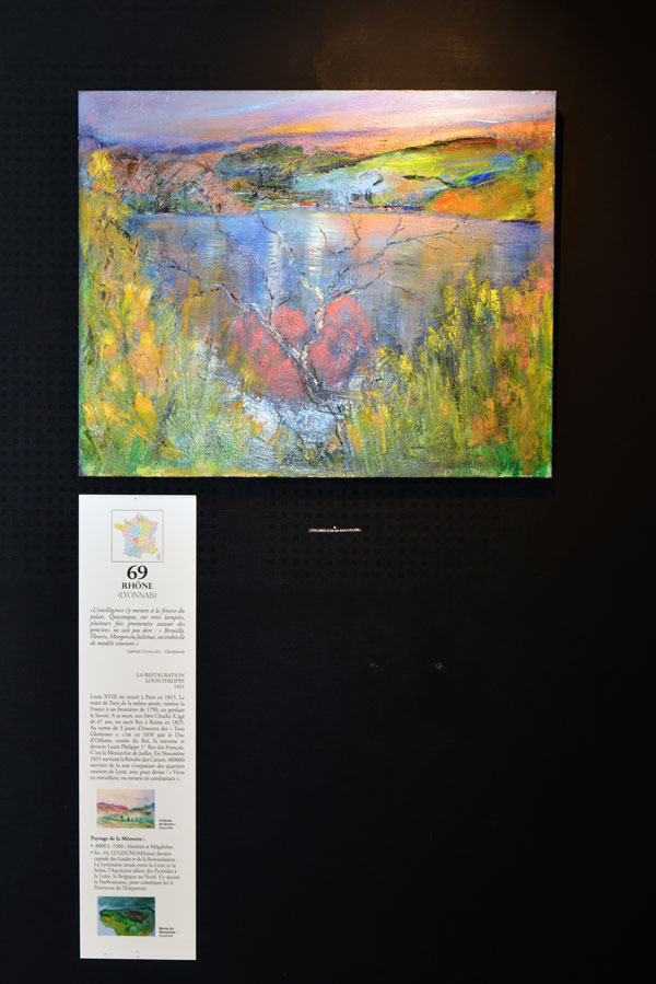 Christian Lobel in a figurative and expressionist style, expresses his emotions in a subtle alchemy of poetry and vigor, focusing primarily to translate the landscape identity of each department, retracing a journey into history, from the Paleolithic to the Great War.