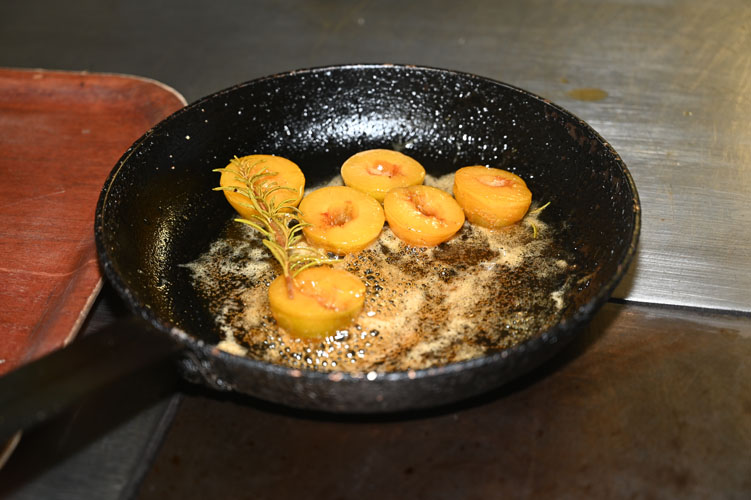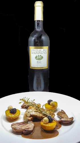 Pan-fried Foie Gras, porcini mushrooms, reine-claude, honey and rosemary compote, condiment with wild blackberry and roasted hazelnut.