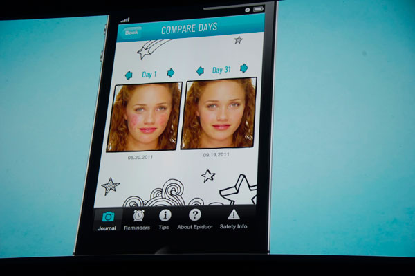 Google algorithms can provide information: David Blair cited the example of what people were seeking during a flu epidemic in New York. Another example of customers engagement: the Epi-Tracker by Epiduo, an entertaining great way to monitor the progress of one’s skin over time when using a treatment against acne: after taking a picture, the users rate their skin every day.