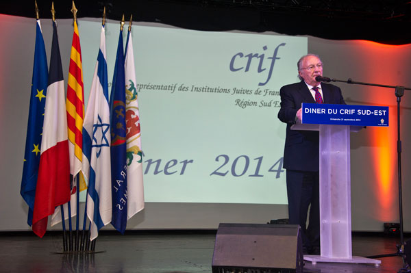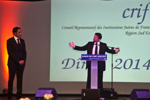 At the annual Gala Diner of the CRIF Sud Est on September 21, 2014, the Jewish community honored two special guests, Christian Estrosi and Jacques Tarnero, for their friendship and actions.