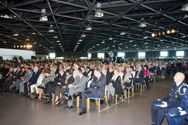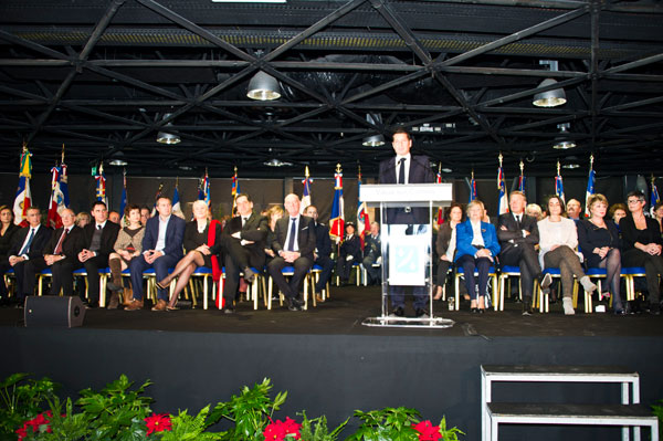 Record attendance on January 17, 2015, for the first New Year wishes by David Lisnard, Mayor of Cannes and Vice-president of the General Council, Delegate for Tourism, surrounded by the City Council and flag bearers in a fully-packed Espace Riviera at the Palais des Festivals.