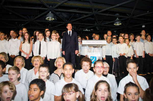 A choir of 80 children dressed in white accompanied the Mayor of Cannes in singing La Marseillaise a cappella.