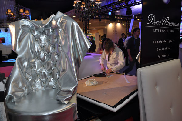 At Heavent Meetings Sud trade show in Cannes, Déco-Flamme presented its skills in events designing, stand creations, design and decoration. On its booth, a hupholstery demonstration workshop showcased the tailor-made company’s capacity to personalize events for demanding brands.